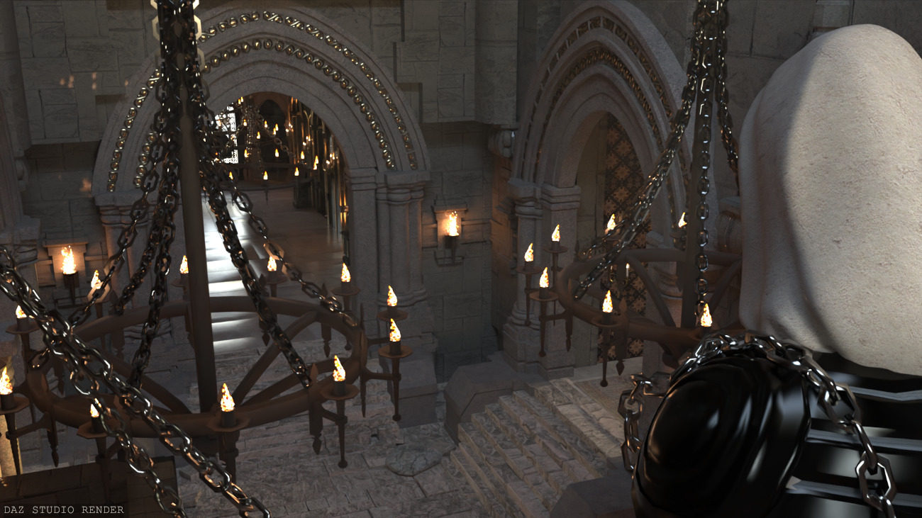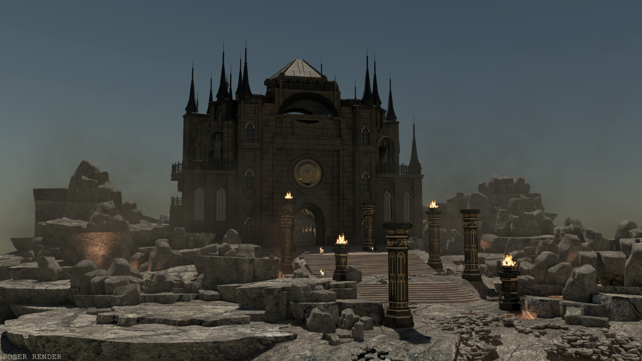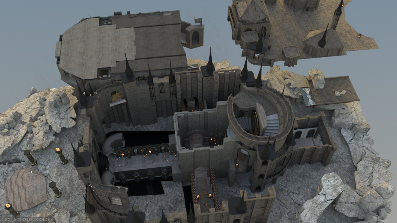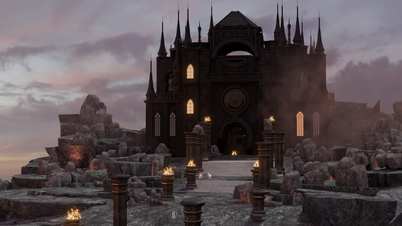 Atop the rocky cliffs and through the fog unfolds… the Dreary castle! An elaborate looking building from the outside but simple within. It’s a 4 hallway crisscross leading to a room at the centre with a large mysterious figure. There’s a staircase spiraling behind, leading to a basic second level as well as the roof.