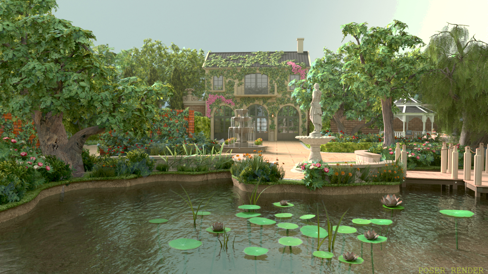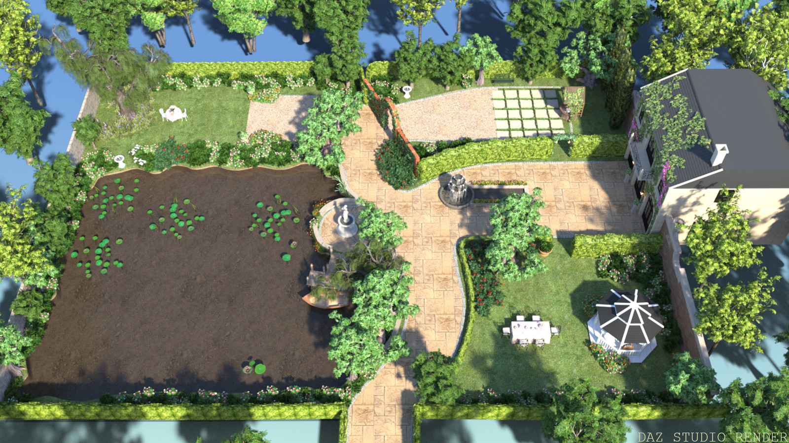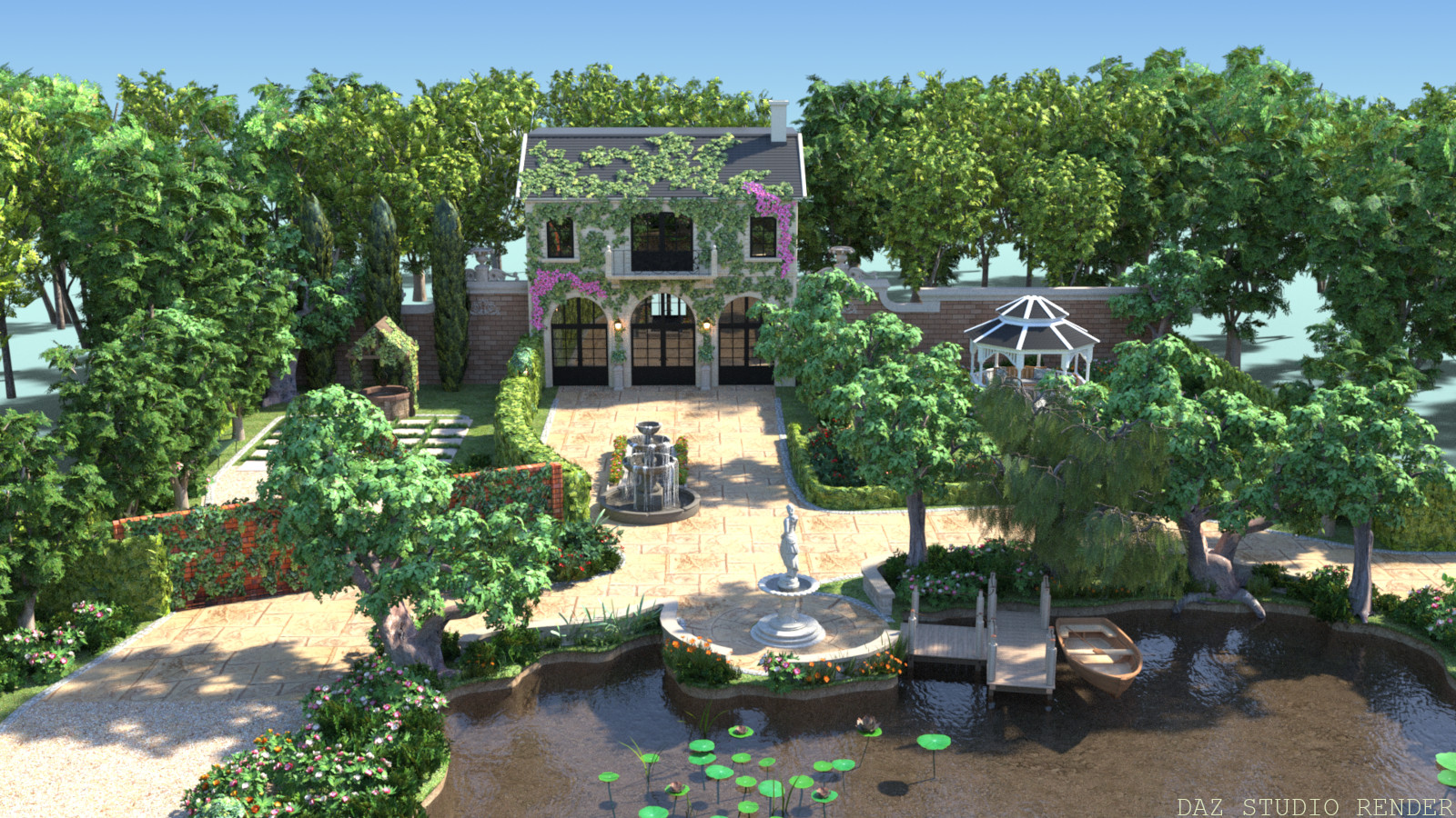 The delightful and serene tea garden is a connected set of pathways from the big iron gates to the rear entrance of home. It has 2 seating areas as well as a canopy with additional seating. At one corner you’ll find a well enclosed and a pond on the opposite end with a dock and boat.