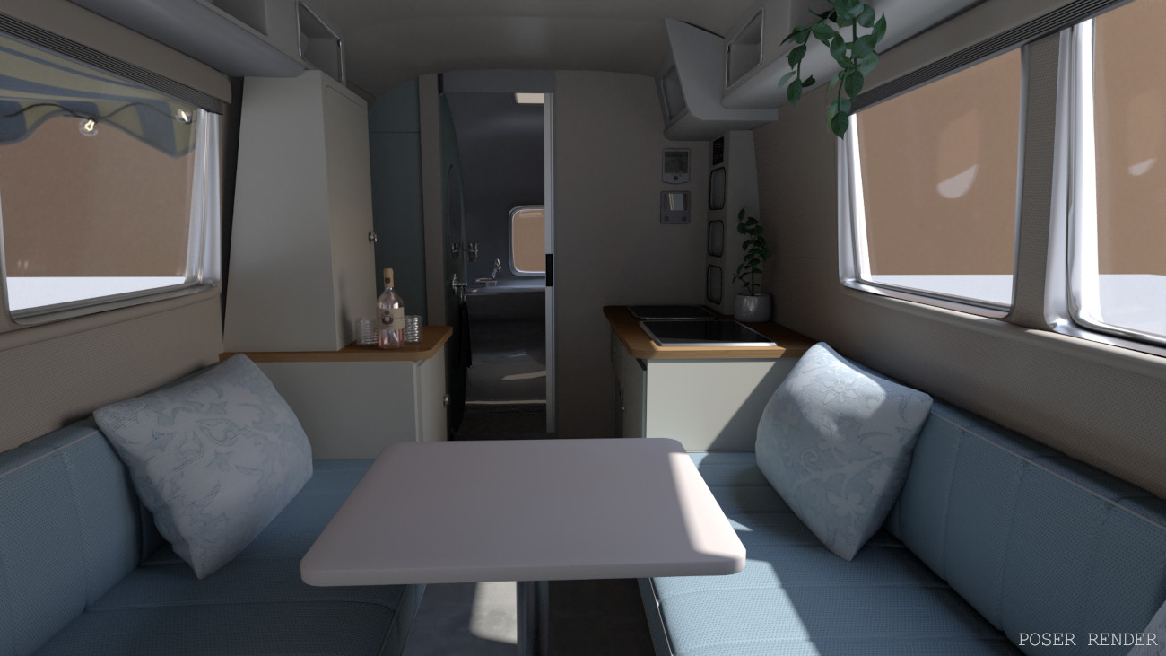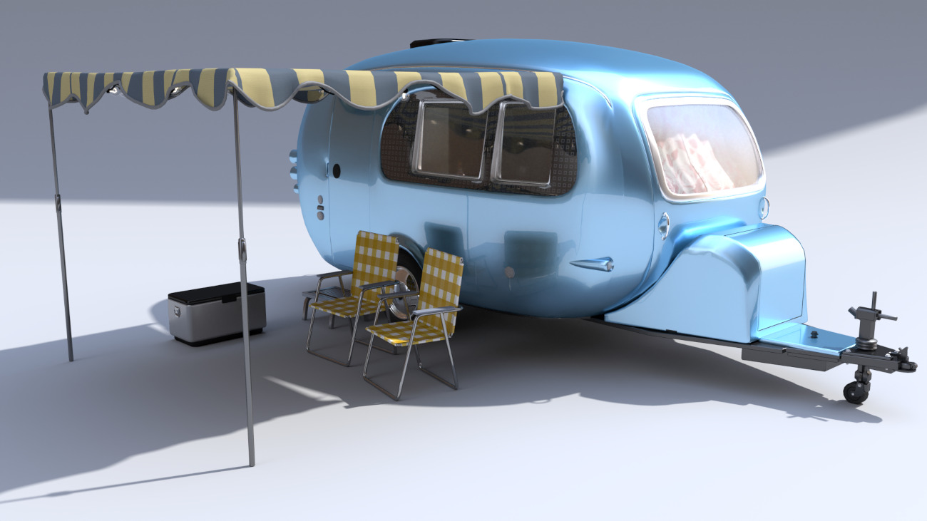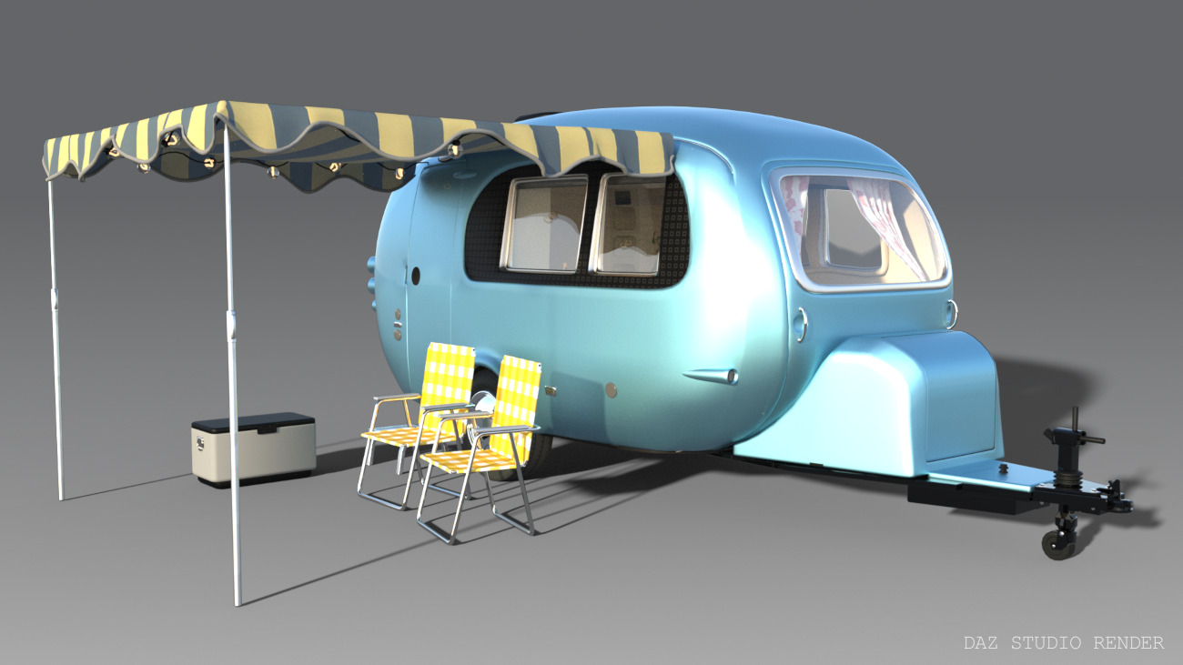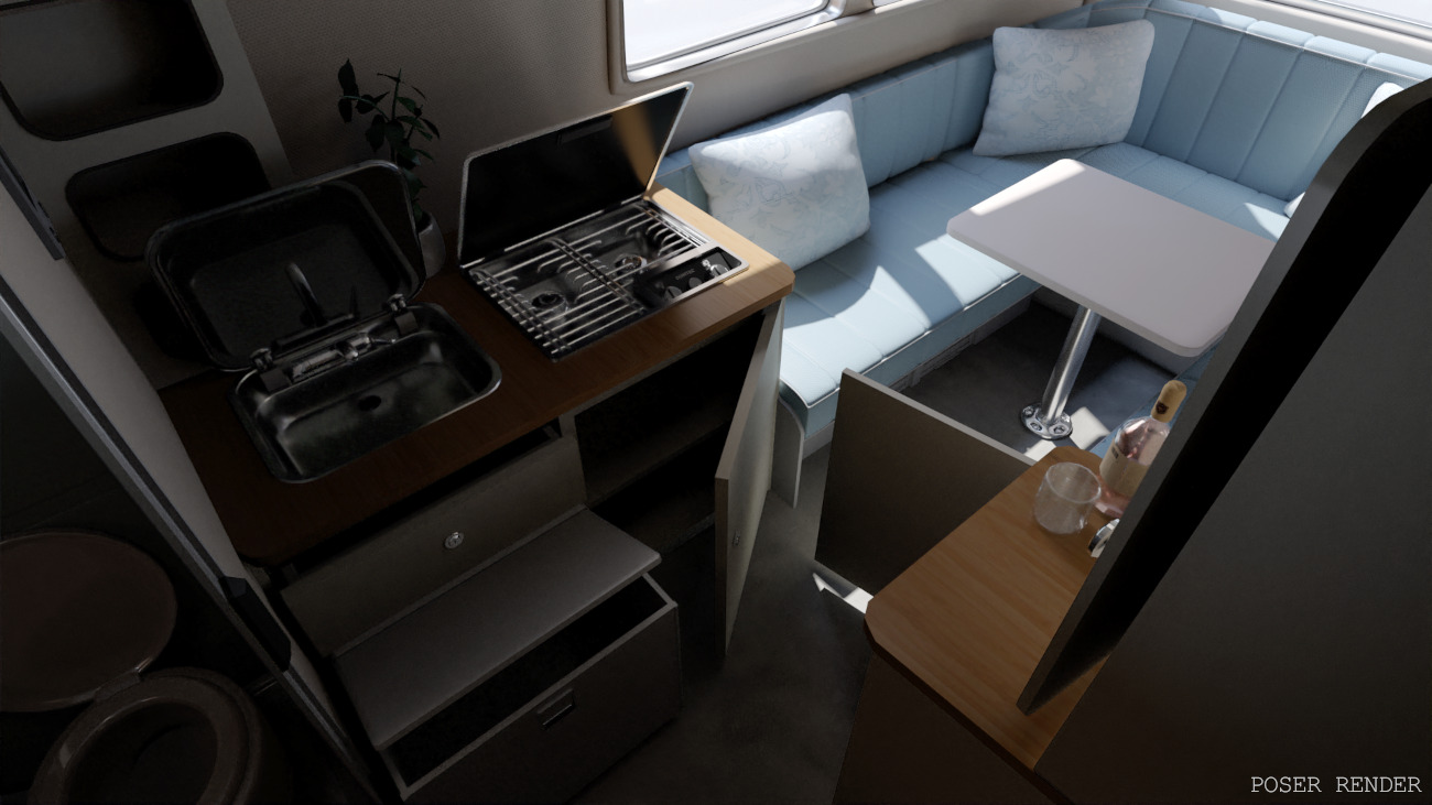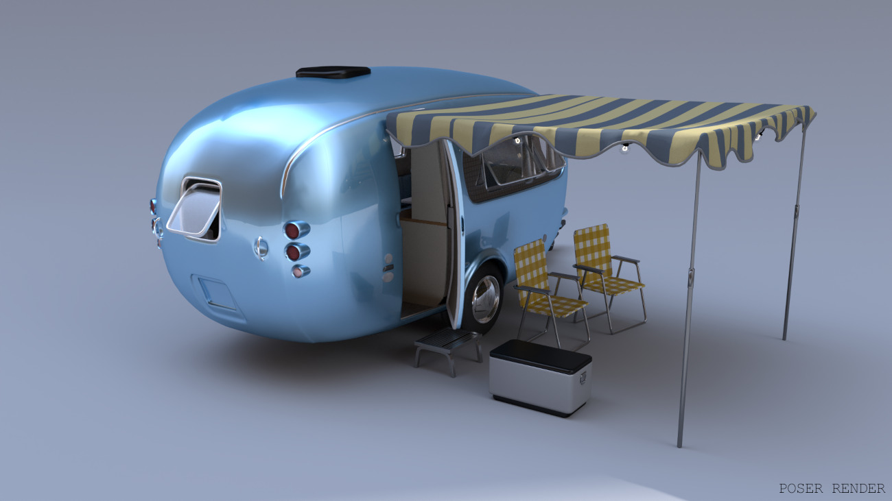 Why leave home when you can take it with you?! The Retro camper is a neat portable living space that contains a lounge, kitchen and bathroom all packed into one. It also features some outside decor for camping spots. Featuring movable parts: