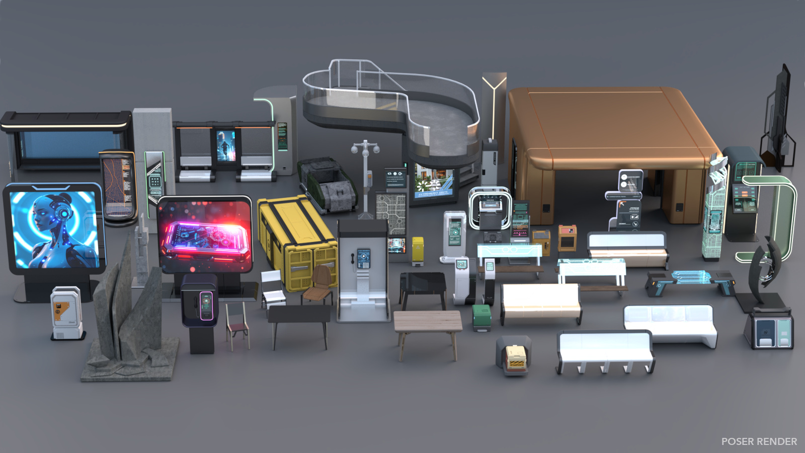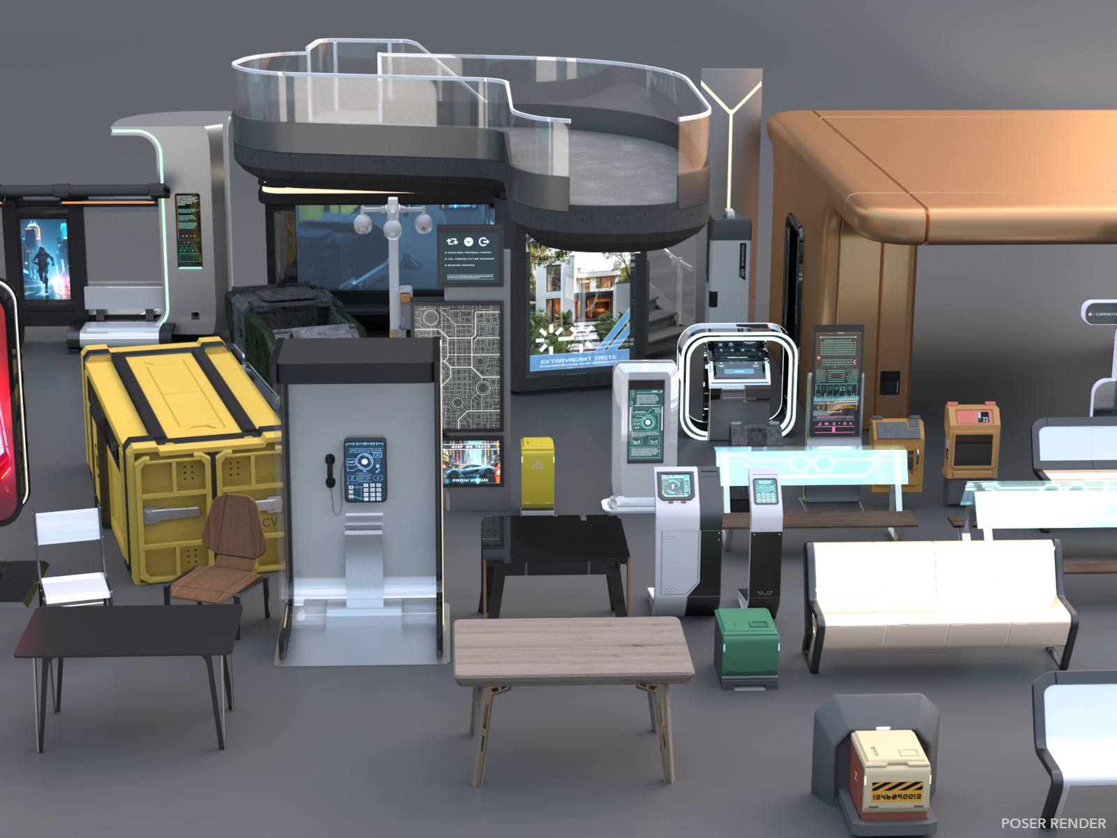 Note that even though this addon is intended for the Sci-fi City. The props are ready and able to be used for any scene.