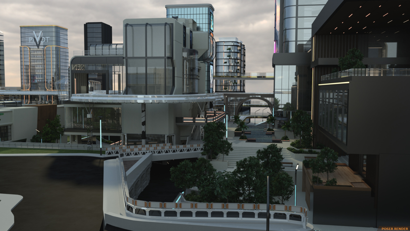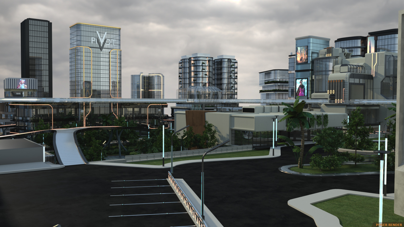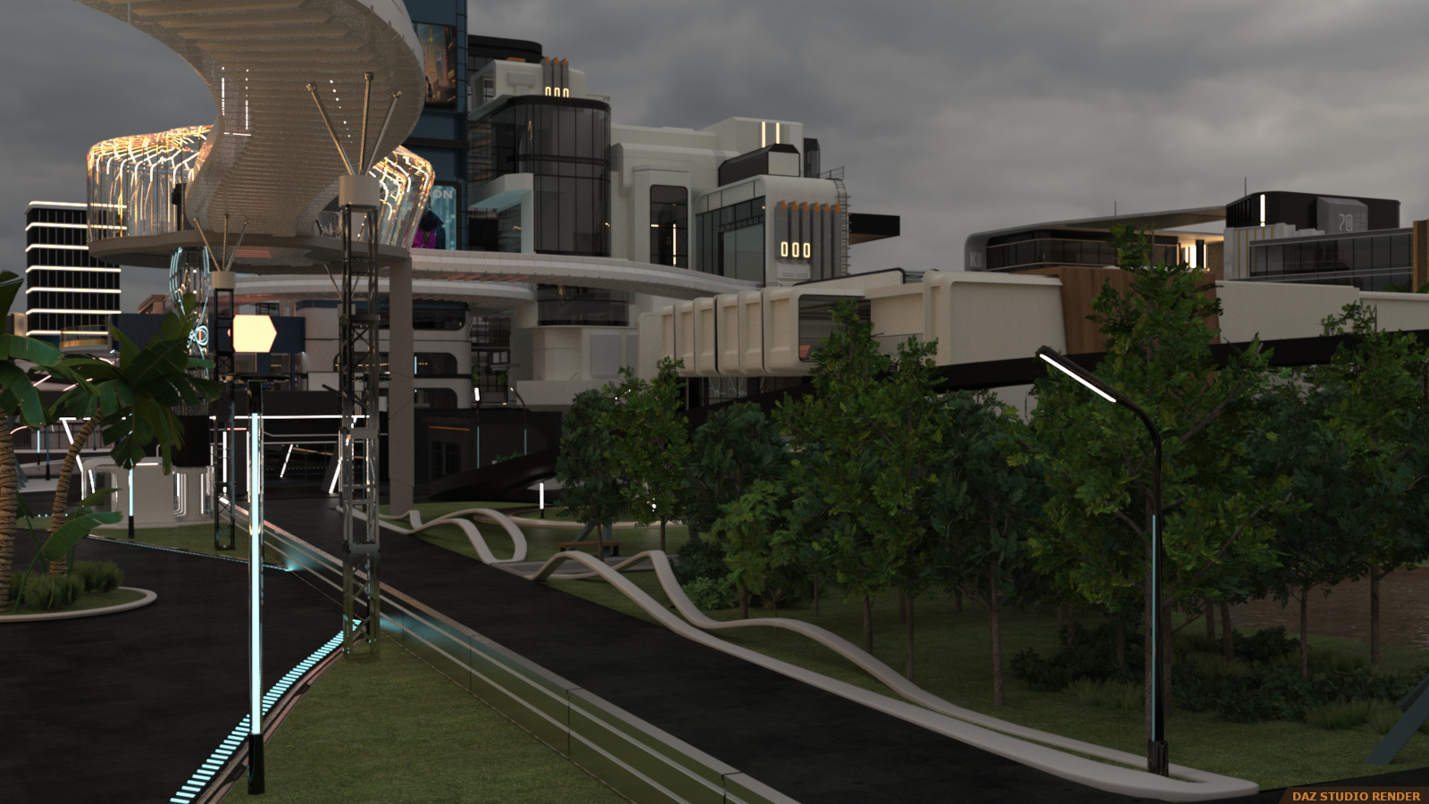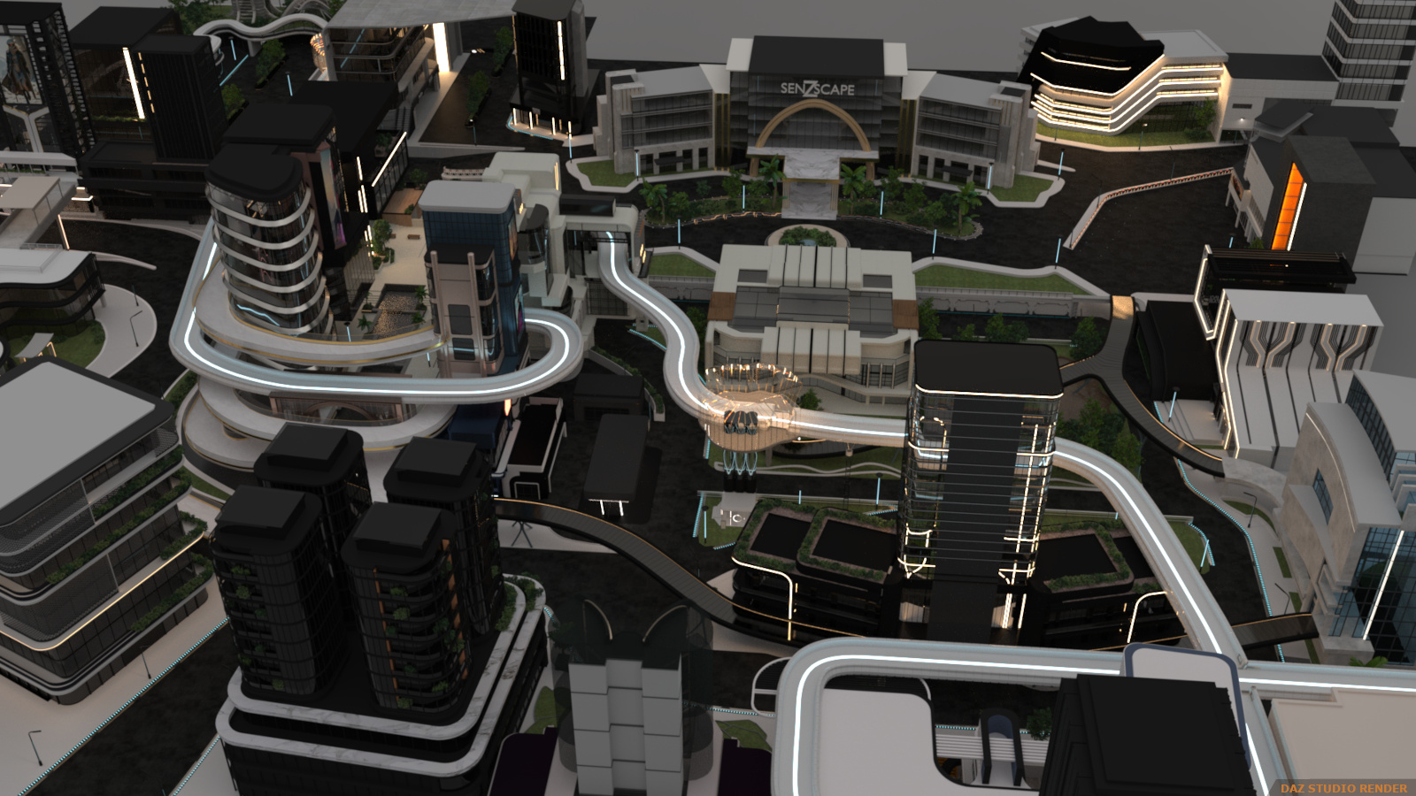 Enter the super futuristic world in the Sci-fi City! It’s a flashy and dynamic environment with so many varying heights that you won’t be sure what’s ground level! And arrangement of 25 buildings categorized into 4 sections and arced over by railway and walkway paths with some open spaces for character action.