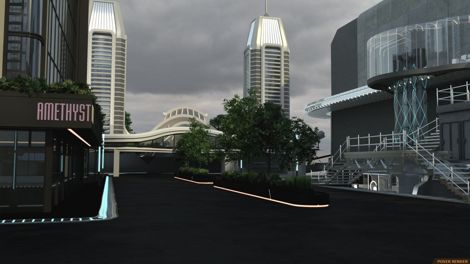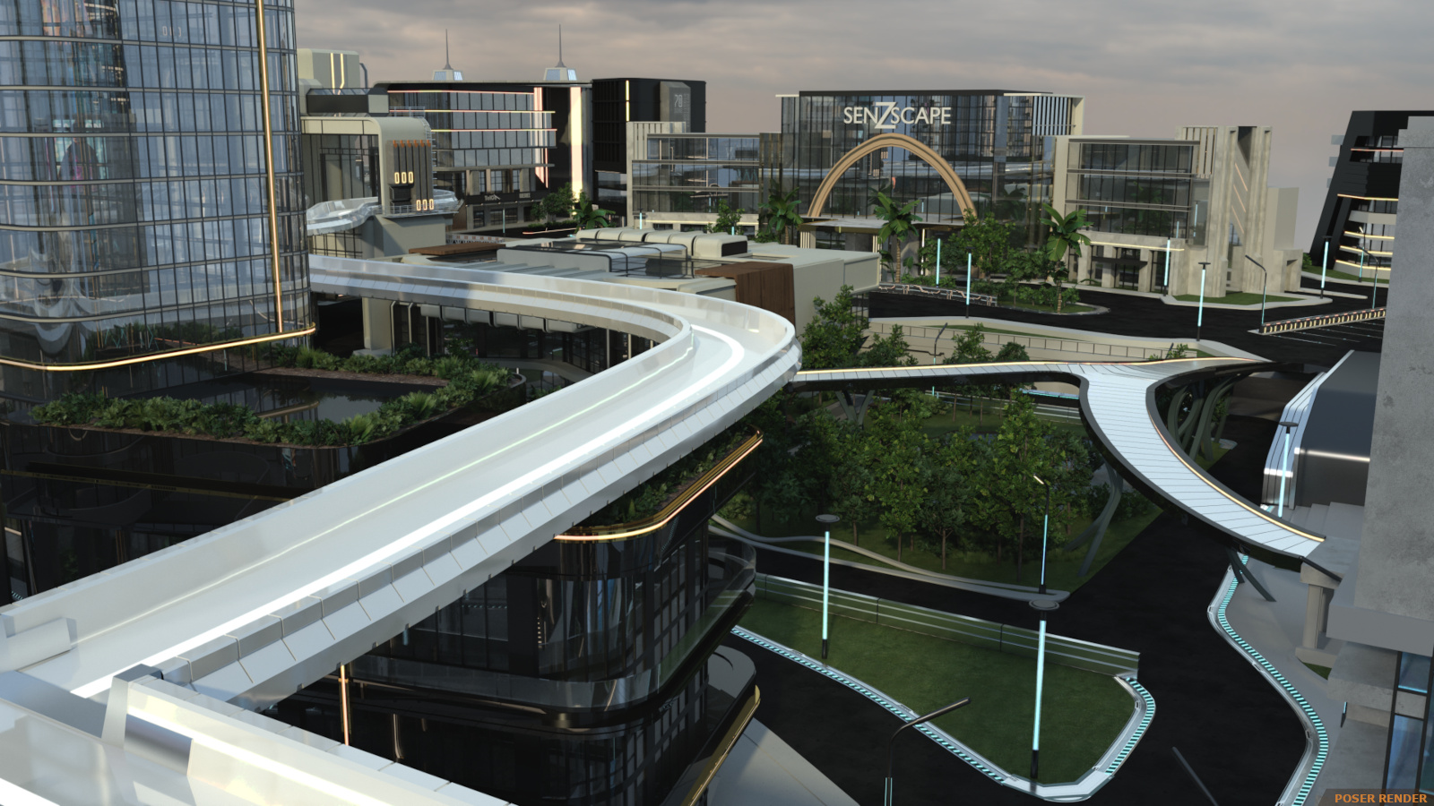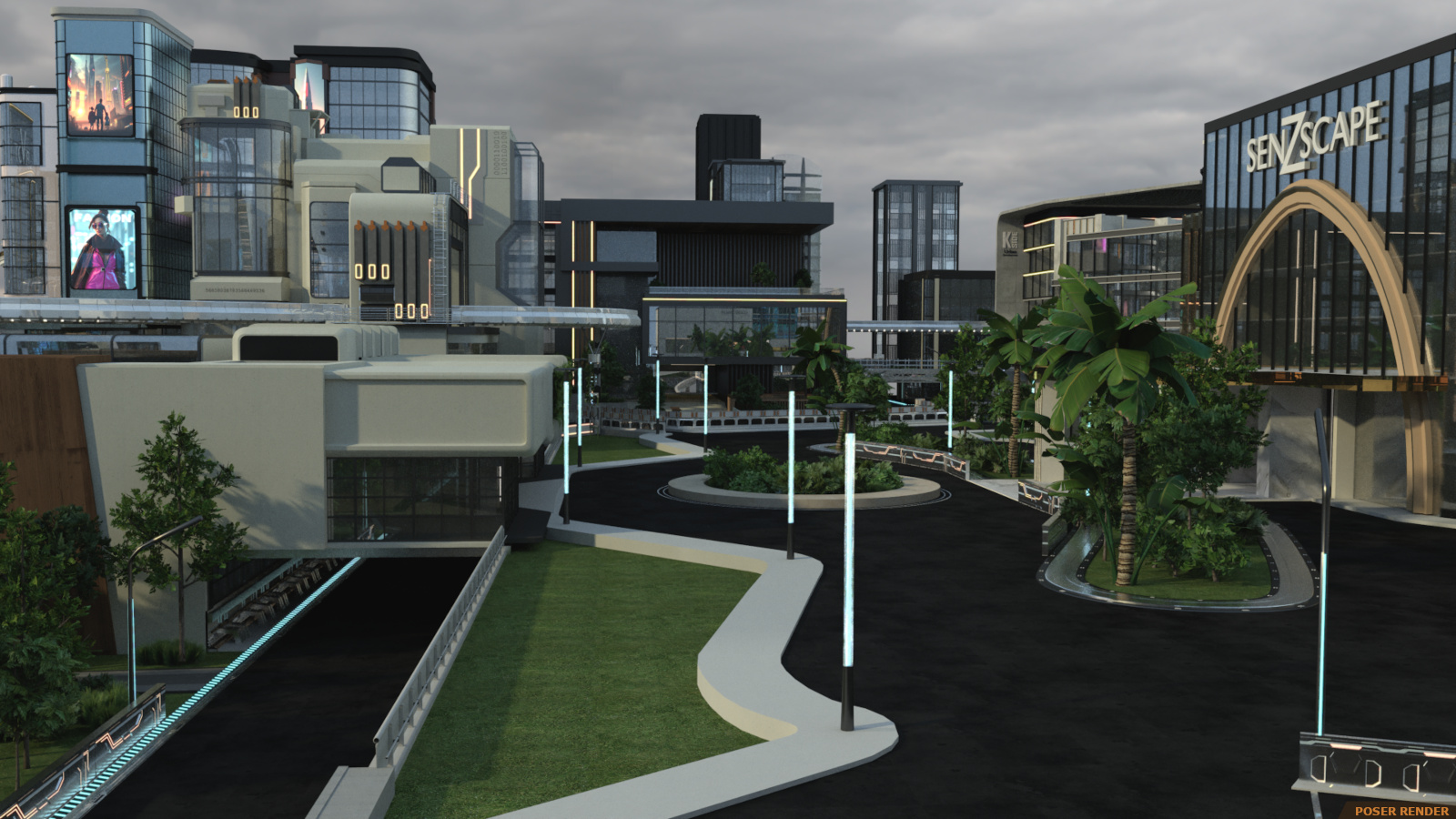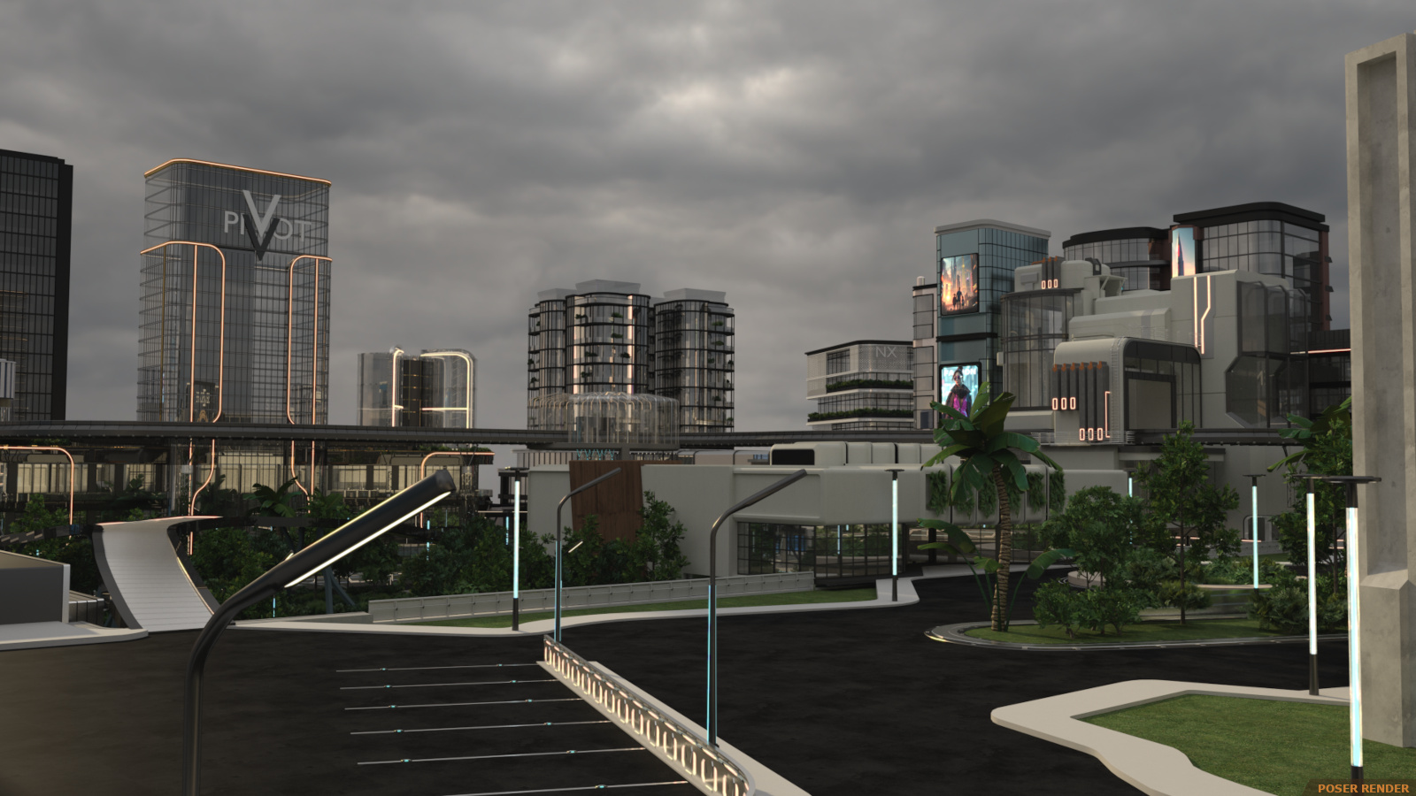 Enter the super futuristic world in the Sci-fi City! It’s a flashy and dynamic environment with so many varying heights that you won’t be sure what’s ground level! And arrangement of 25 buildings categorized into 4 sections and arced over by railway and walkway paths with some open spaces for character action.